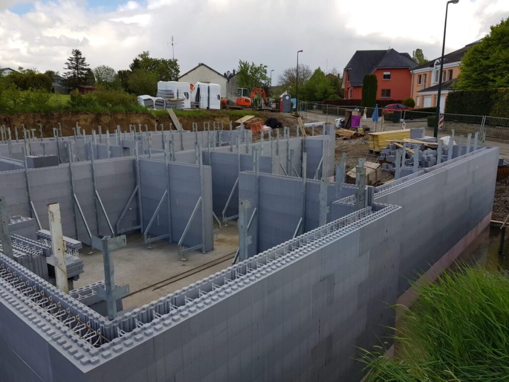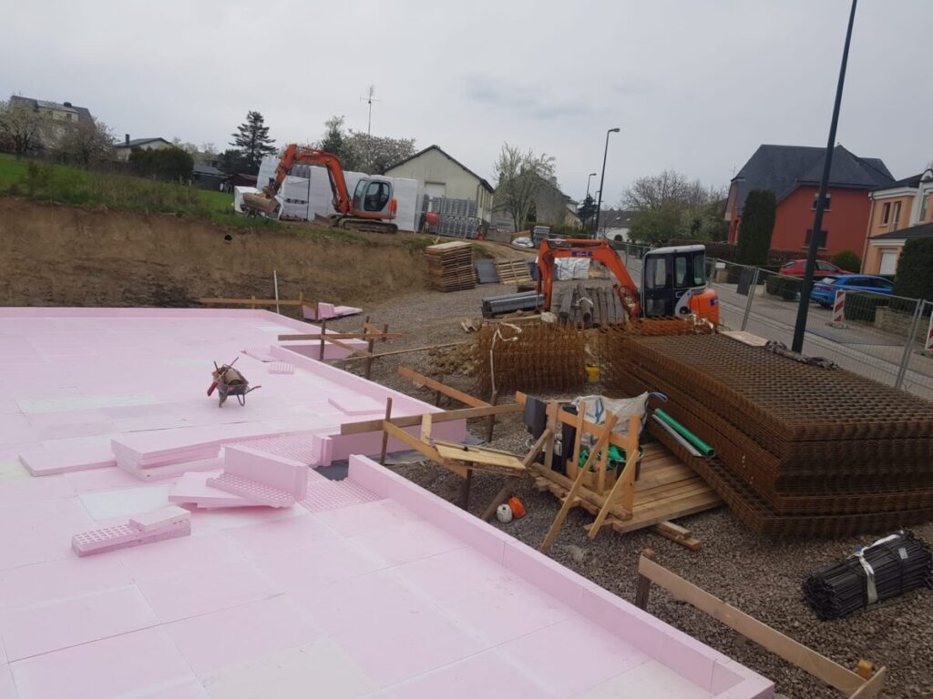 V Luxemburgu, v kraju Düdelingen, se je z JUBHome sistemi pričela gradnja štiri etažnih stavb v nizu. Temeljna plošča bo izolirana z JUBHome BASE elementi debeline 16 cm, tlačne trdnosti 400 kPa. Stene pa bodo izvedene iz JUBHome WALL 300 in 390 zidaki.