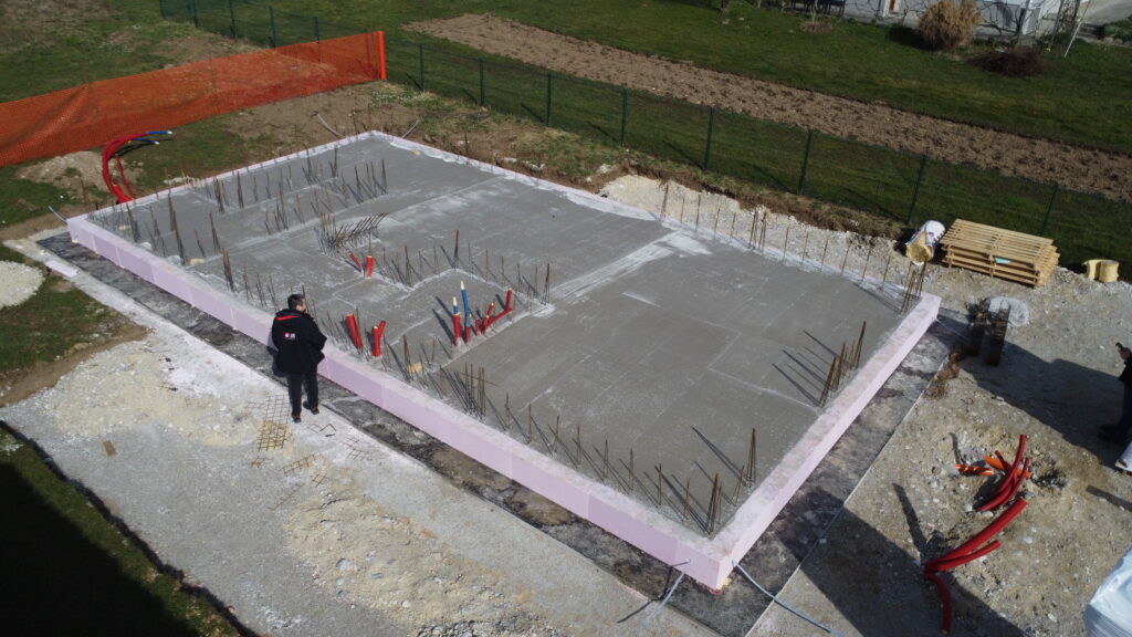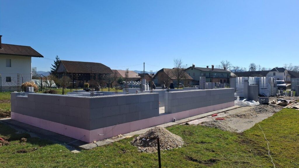 Gradbinec, ki naš sistem odlično pozna, je dela izvedel izjemno hitro – v le sedmih dneh je dokončal izvedbo temeljne plošče ter postavitev obodnih in notranjih nosilnih sten prve etaže. Nadaljevanje del, vključno s postavitvijo sten nadstropja, bo steklo po izvedbi etažne plošče, predvidoma v zadnjem tednu marca. Več slik sledi v kratkem.