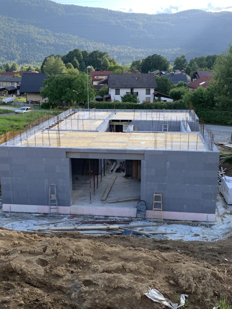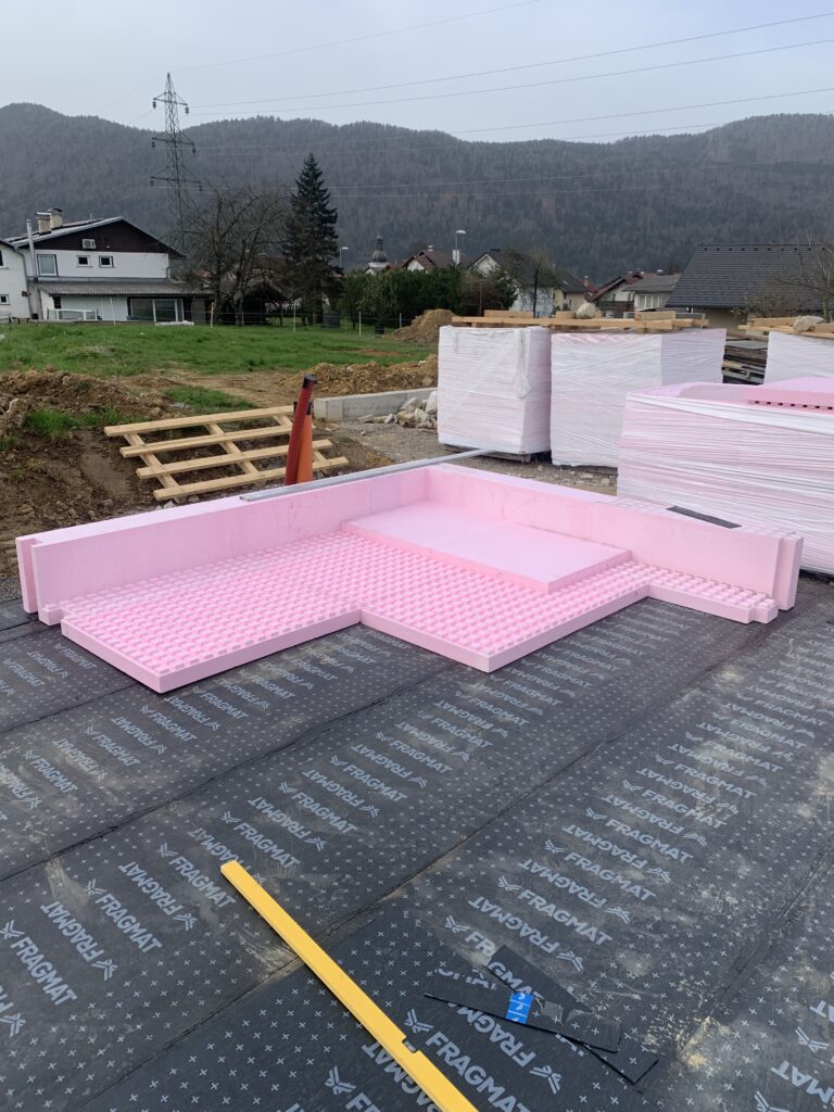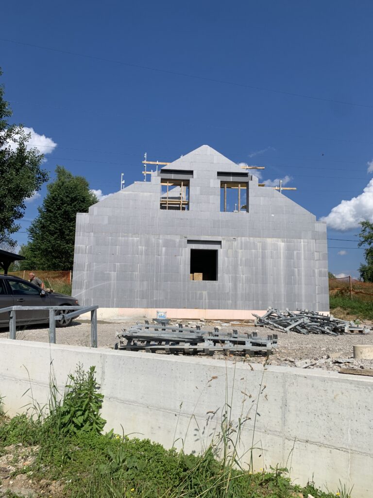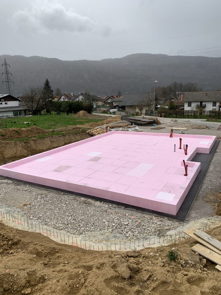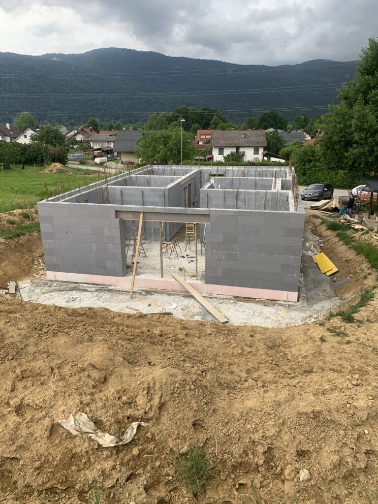Izvedena je temeljna plošča z izolacijo JUBHome BASE, asistenco pa smo nudili pri gradnji obodnih in notranjih nosilnih sten s sistemom JUBHome WALL.