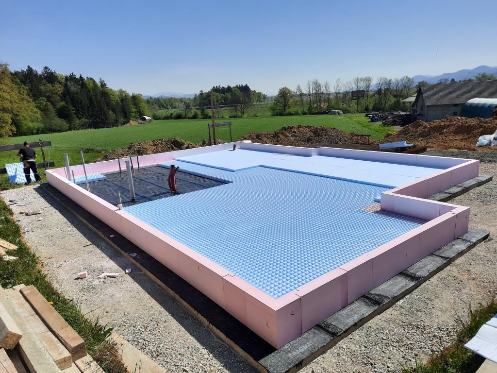 Pri Vranskem v občini Tabor stoji nova enodružinska hiša velikosti 166 m2. Za izolacijo temeljne plošče so se odločili za BASE toplotno izolacijsko kad tlačne trdnosti 400 kPa in debeline 8+8 cm, za stene pa so uporabili WALL 390 zidake. Gradnja do te faze je potekala hitro, brez zapletov in po željah investitorja.