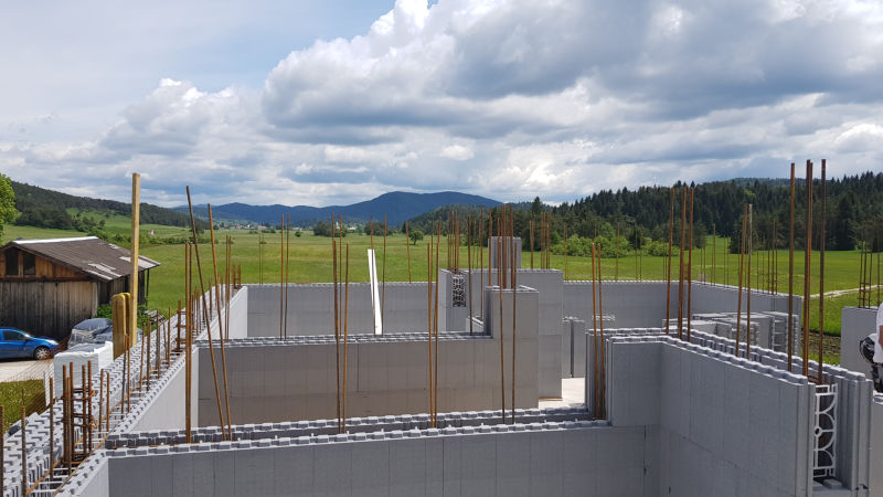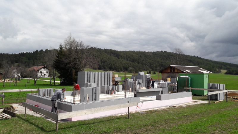 Pričeli smo z gradnjo enostanovanjske hiše na Velikih Blokah. Investitor je izbral sistema JUBHome BASE 8+8 cm in JUBhome WALL 465. Za notranje stene so uporabljeni elementi WALL300. JUBHome BASE smo, kot je sedaj to že v navadi, sestavili v vsega treh urah.
